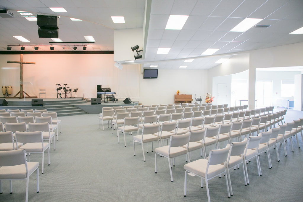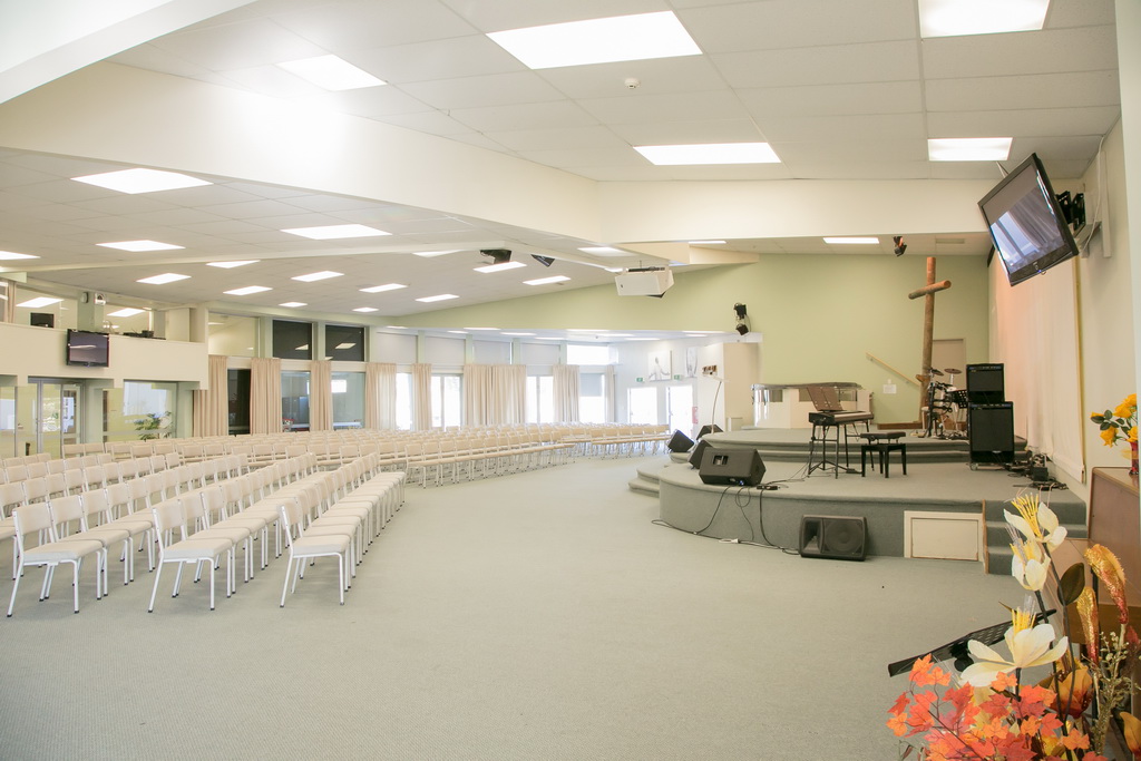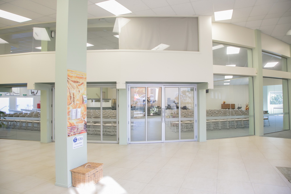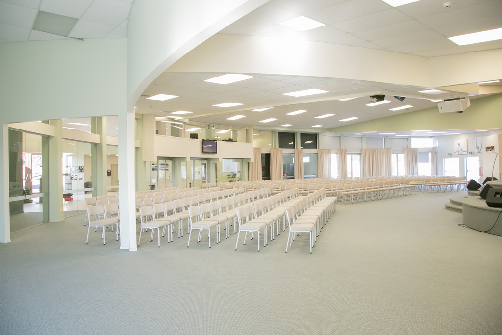 The seating arrangements comes with approximately 400 chairs and can comfortably accommodate 500 and more and it is most suitable for larger functions such as weddings, funerals, staged productions, graduations, prize giving’s etc. An overflow into the tiled foyer area can further increase capacity. The total portable seating available within the Life Development Centre is 700. Extra seating can easily be hired in on request for large events utilising the total facility.